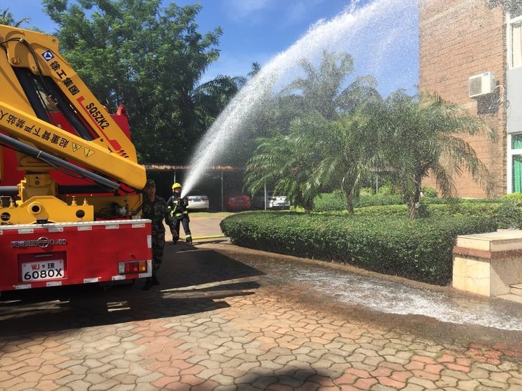 9點(diǎn)40分,金盤消防中隊2輛消防車和9名消防官兵抵達(dá)現(xiàn)場,迅速展開滅火和救援行動。在消防官兵的奮勇?lián)岆U下,火情迅速得到了控制,并被徹底撲滅,被困員工也被安全救出,演練就此結(jié)束。