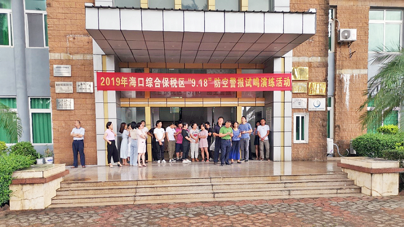 為增強(qiáng)駐區(qū)企業(yè)員工的國防觀念和防空意識(shí),了解和識(shí)別防空警報(bào)信號,掌握防空襲疏散隱蔽知識(shí),海口綜合保稅區(qū)聯(lián)合我司開展“九一八”防空警報(bào)試鳴演練活動(dòng)。此次活動(dòng)由綜保區(qū)統(tǒng)一指揮,我司負(fù)責(zé)具體實(shí)施,社事局局長黎晨主持,財(cái)政局局長王振武、園管局局長馬慶禮、原紀(jì)檢監(jiān)察室主任李軍、社事局副局長李建玲、經(jīng)發(fā)局副局長歐文、綜保倉儲(chǔ)物流公司、保安部、市中醫(yī)院等領(lǐng)導(dǎo)及相關(guān)部門負(fù)責(zé)人參加觀摩演練。